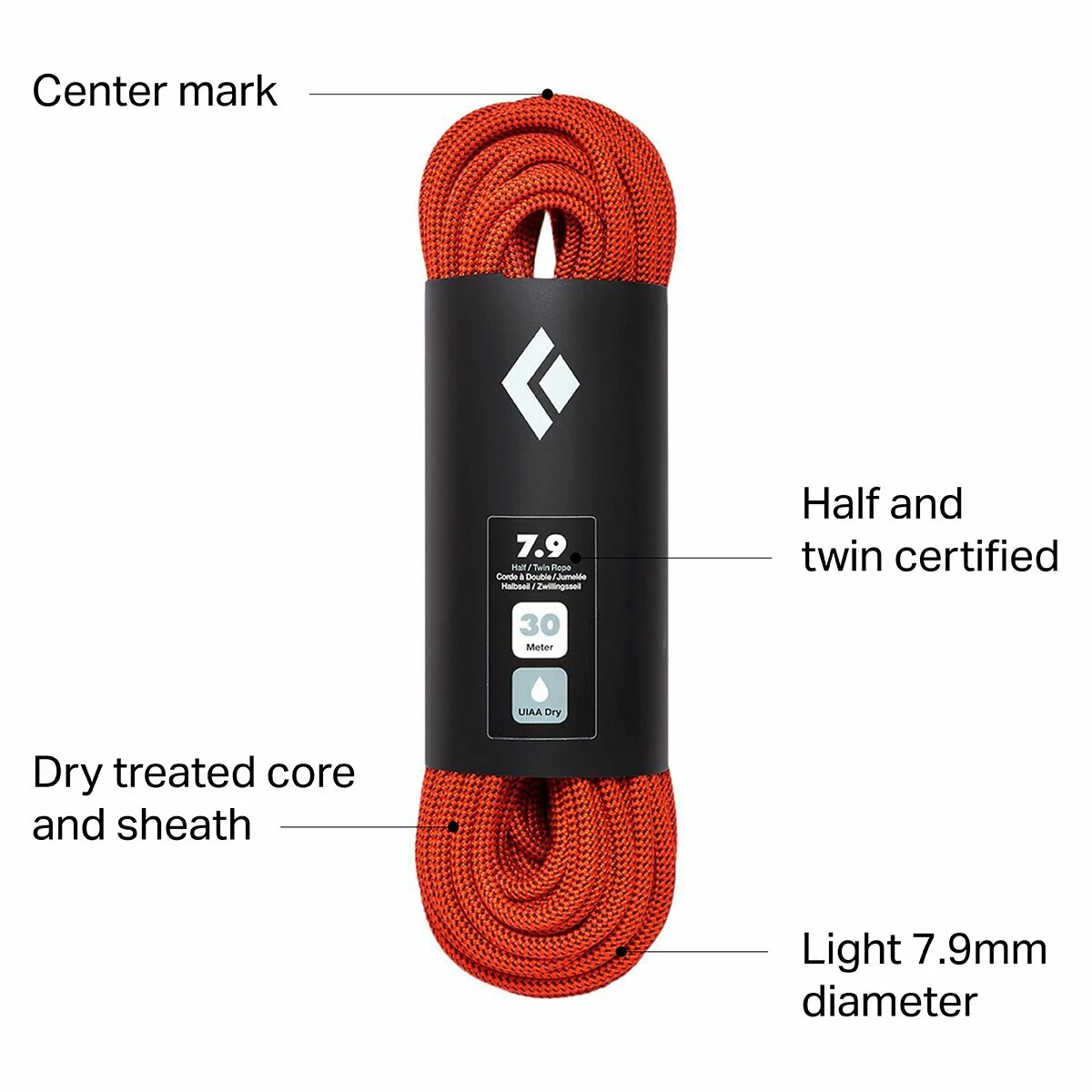 - Black Diamond’s skinniest twin and half climbing rope
